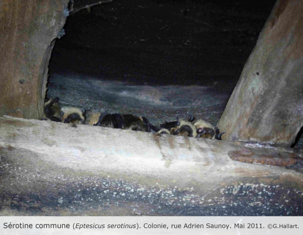 Colonie de Sérotines communes dans un grenier rue Adrien Saunoy en mai 2011 :