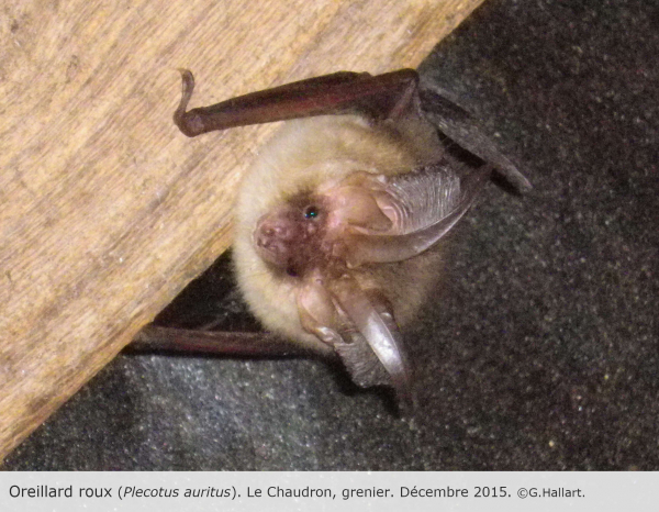 Sur les deux espèces connues dans notre région, à ce jour seul l’Oreillard roux a été observé sur notre commune :